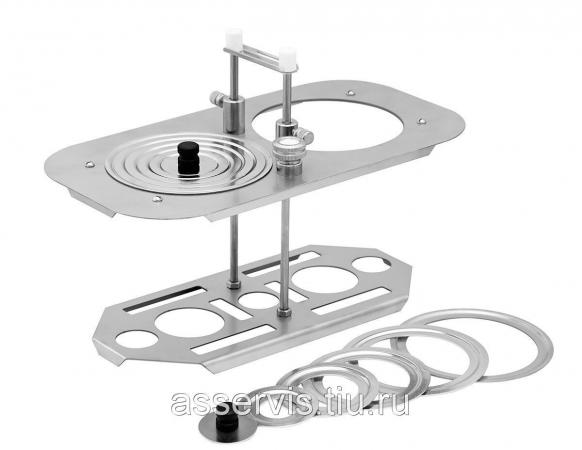 • Система из 5-ти стальных концентрических колец, позволяющая размещать в ванне различные колбы, стаканы, чашки для выпаривания и пр. (типовой диаметр рабочего места - 110 мм, внутренний диаметр колец - 94, 78, 60, 43 и 26 мм).