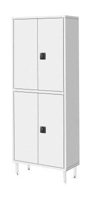 Верхняя и нижняя секции – с двумя металлическими дверцами, оборудованными ригельными замками, и двумя металлическими полками в каждой секции.