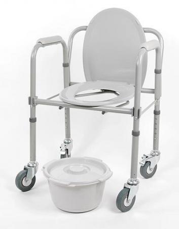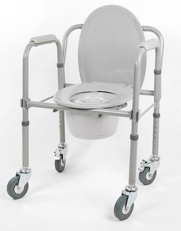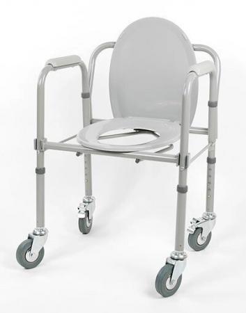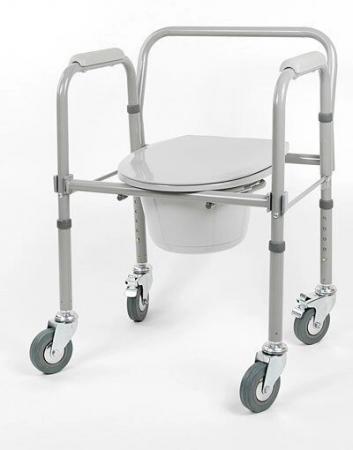 Кресло-туалет складной на колесахКресло-туалет с санитарным оснащением предназначено для людей с нарушениями опорно-двигательного аппарата и престарелых. Существенно облегчает уход за малоподвижным больным. Подходит для стационарных медицинских учреждений, и для домашнего использования. Кресло оснащено цельнолитыми колесами. Кресло-туалет на колесах упрощает перемещение кресла и больного на нем. Кресло-туалет устойчиво, благодаря стопорам на задних колесах. Регулировка высоты сиденья обеспечивает максимально комфортное положение больного. Съемное судно, стульчак и накладки на подлокотниках из гигиенического пластика выдерживают многократную гигиеническую обработку. |