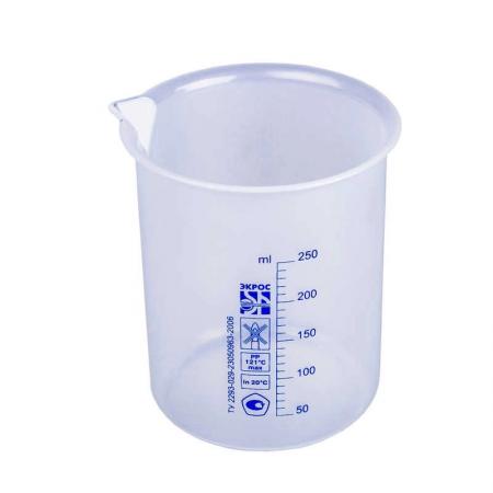 Объем - 250 мл. Материал - полипропилен. Диаметр - 78/70 мм. Высота - 95 мм. Цветная шкала. Цена деления - 10 мл. Первая отметка - 50 мл.