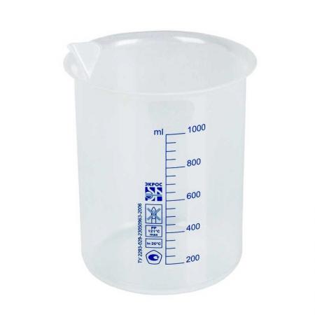 Объем ― 1000 мл. Материал ― полипропилен. Диаметр ― 123/108 мм. Высота ― 145 мм. Цветная шкала. Цена деления ― 50 мл. Первая отметка ― 200 мл.