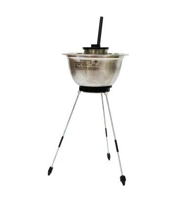 Вискозиметр представляет собой резервуар цилиндрической формы, переходящий внизу в полый конус со съемным соплом. Сопло выполнено из нержавеющей стали. Прибор устанавливается на штативе с регулировочными ножками (тренога).