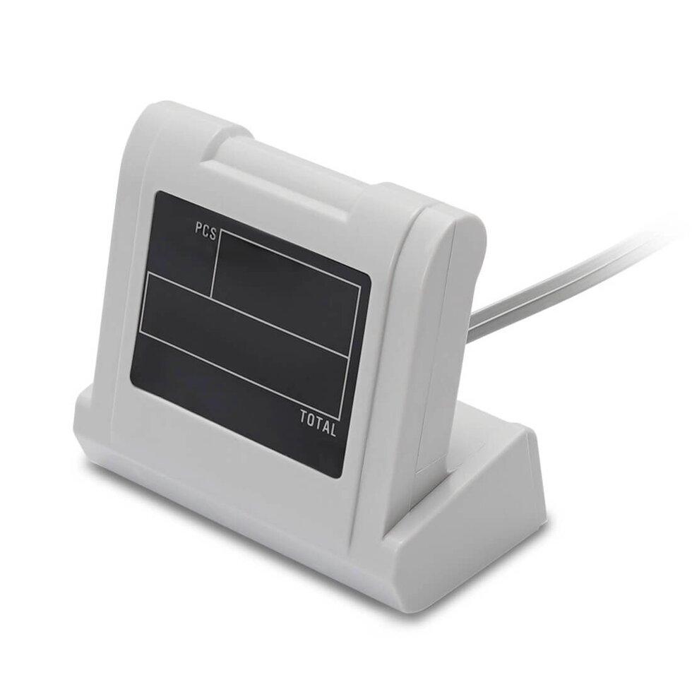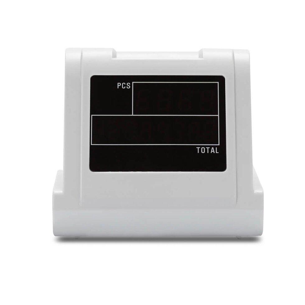 Выносной дисплей упрощает работу со счетчиком купюр. На его экран выводятся большие цифры, которые хорошо читаются. Используя этот аксессуар, можно демонстрировать сумму подсчета, не допуская посторонних в кассовую зону. На выносном экране отображаются те же цифры, что и на встроенном дисплее счетчика.Характеристики выносного экранаКорпус аксессуара сделан из прочного пластика. Цвет панелей: белый. Конструкция защищена от ударов, от падений с высоты 1,5 м. Также корпус защищает электронику от пыли и влажности.Основные характеристики товара:Габаритные размеры: 56*100*92 мм.Вес устройства: 111.3 грамм.Тип питания: 1.1 W/5V.Аксессуар не займет много места на столе оператора. Выносной дисплей подключается к счетчику купюр через совместимый разъем. Покупать кабель для подключения не понадобится: он входит в комплект.У двух приборов совместимое программное обеспечение. Вы можете начинать работу с дисплеем сразу после подключения. Выносной дисплей совместим со счетчиком банкнот MERTECH С-100 CIS и его модификацией CIS MG.Описание совместимого детектораМодель С-100 CIS — мультивалютный счетчик, в котором реализовано 7 детекций (CIS, SD, UV, RGB, SP, DD, IR). В модификации MG предусмотрена магнитная детекция. Аппараты работают в 6 режимах: простой и автоматический пересчет, суммирование, проверка номиналов, фасовка и сортировка.Другие преимущества линейки С-100 CIS:Скорость проверки: от 800 до 1500 купюр за минуту.Емкость загрузочного лотка: 200 ассигнаций.Вместимость приемного лотка: 500 ассигнаций.Легкая очистка датчиков через открываемый тракт.Результаты проверки и подсчета сохраняются в памяти.Удобная ручка для транспортировки.Кроме рублей, евро и долларов владельцы могут устанавливать расширения для работы с другими валютами. При выходе новых купюр будут доступны автоматические обновления прошивки. Для обновления ПО используется USB-порт. Как оформить заказВ интернет-магазине MERTECH вы можете купить счетчики и аксессуары для работы. При заказе на сайте действуют низкие цены от производителя. Доставка оборудования проводится по России. Чтобы оформить заказ, оставьте заявку, и вскоре вам позвонит менеджер.