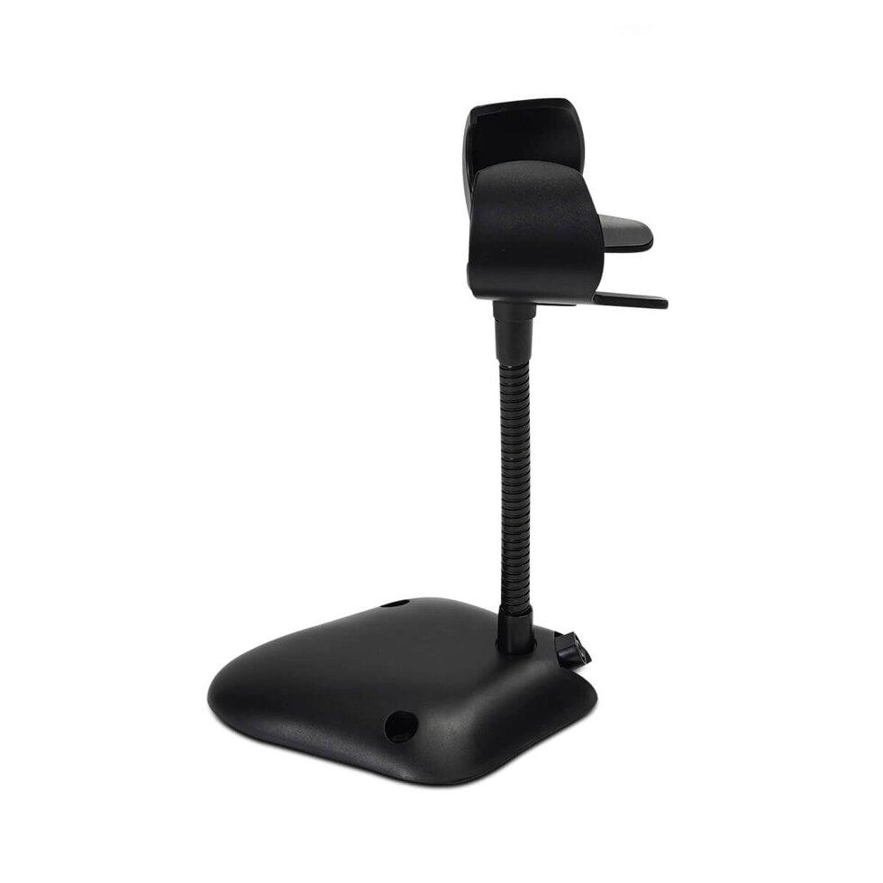 Подставка дает возможность использовать ручной сканер в качестве стационарного. Благодаря гибкой ножке наклон прибора можно регулировать, чтобы упростить работу кассира. Стойка выполняет опорную функцию и служит местом хранения устройства. Держатель изготовлен из прочного пластика. Гибкая ножка выдерживает многократное сгибание под разными углами. Продуманная форма конструкции и нескользящее основание обеспечивают устойчивое положение считывателя. Аксессуар предназначен для следующих моделей MERTECH: SUNMI NS021. 610 и 600. 2210 и 2200 Black. 2310 и 2300 Black. Наличие подставки дает возможность настроить режим «Свободные руки». При активации этой функции устройство будет автоматически реагировать на штрих-коды, которые попадают в зону охвата. Подвижная стойка позволяет расположить окно сканирования под правильным углом и расширить рабочую зону. Опция «Свободные руки» повышает эффективность работы кассира. Когда сканер используется в этом режиме, уменьшается время обслуживания клиентов. В отличие от стационарных моделей, ручной считыватель можно снимать с платформы. Например, для того, чтобы сканировать коды с крупногабаритных товаров.