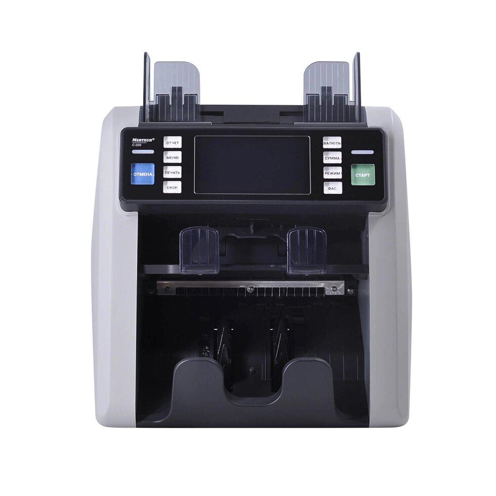 MERTECH C-200 DOUBLE CIS MG Touch Screen — это профессиональный двухкарманный счетчик банкнот с расширенной системой проверки подлинности и удобным сенсорным управлением. Модель создана для интенсивной эксплуатации в банковских организациях, офисах инкассации и крупных торговых сетях. Оборудование сочетает экспертный уровень детекции, высокую скорость обработки наличности и интуитивно понятный интерфейс благодаря современному сенсорному TFT-экрану диагональю 4,5 дюйма.Преимущества модели Экспертная проверка подлинности Счетчик оснащен системой двойного CIS-анализа лицевой и оборотной стороны банкнот, магнитной, инфракрасной и ультрафиолетовой детекцией, спектральным анализом краски, RGB-контролем цвета и геометрическим анализом банкнот. Высокая производительность Скорость обработки наличности достигает 1500 банкнот в минуту в режиме пересчета и до 1200 банкнот в режимах проверки подлинности. Современное управление через сенсорный экран Сенсорный TFT-дисплей диагональю 4,5 дюйма с разрешением 854×480 пикселей обеспечивает удобное управление и отображение информации. Широкий функционал сортировки Устройство поддерживает сортировку по номиналу, версии, ориентации, лицевой и оборотной сторонам банкнот, а также режим сверки серийных номеров. Работа с множеством валют Поддерживается более 18 валют, включая рубль, доллар США, евро, китайский юань, белорусский рубль и другие. Гарантированное качество Счетчик прошел тестирование в Центральном банке РФ и показал отличные результаты точности проверки и надежности.Проверка подлинности по 10 параметрам CIS-анализ аверса и реверса Магнитная детекция Инфракрасный контроль Ультрафиолетовый контроль Спектральный анализ краски RGB анализ цвета Проверка на сдвоенность Геометрический контроль банкнот Считывание серийных номеров Сортировка по ветхости и ориентацииТехнические характеристики Вместимость загрузочного лотка: 500 банкнот Вместимость основного бункера: 250 банкнот Вместимость кармана отбраковки: 100 банкнот Скорость счета: 800/1000/1200/1500 банкнот в минуту Скорость проверки в режимах MIX/НОМИНАЛ/ВЕРСИЯ: до 1200 банкнот в минуту Уровень шума: до 80 дБ Размер фасовки: от 1 до 1000 банкнот Питание: AC 100–240 В, 50/60 Гц Интерфейсы подключения: 2 × USB, RS232, RJ12 Поддержка подключения принтера чеков и внешнего дисплея Потребляемая мощность: менее 80 Вт Рабочая температура: +5°С ~ +35°С Габариты: 290×285×325 мм Вес: 9,3 кг Класс защиты корпуса: IP42Комплектация Счетчик банкнот MERTECH C-200 DOUBLE CIS MG Touch Screen Кабель питания Выносной LED-дисплей Калибровочный шаблон Инструкция по эксплуатации Гарантийный талон УпаковкаЗаключениеMERTECH C-200 DOUBLE CIS MG Touch Screen — это лучшее решение для организаций, где критически важны точность, скорость и удобство работы с наличностью. Усовершенствованная сенсорная панель, экспертная проверка подлинности и расширенные возможности сортировки делают эту модель идеальным выбором для профессионалов.