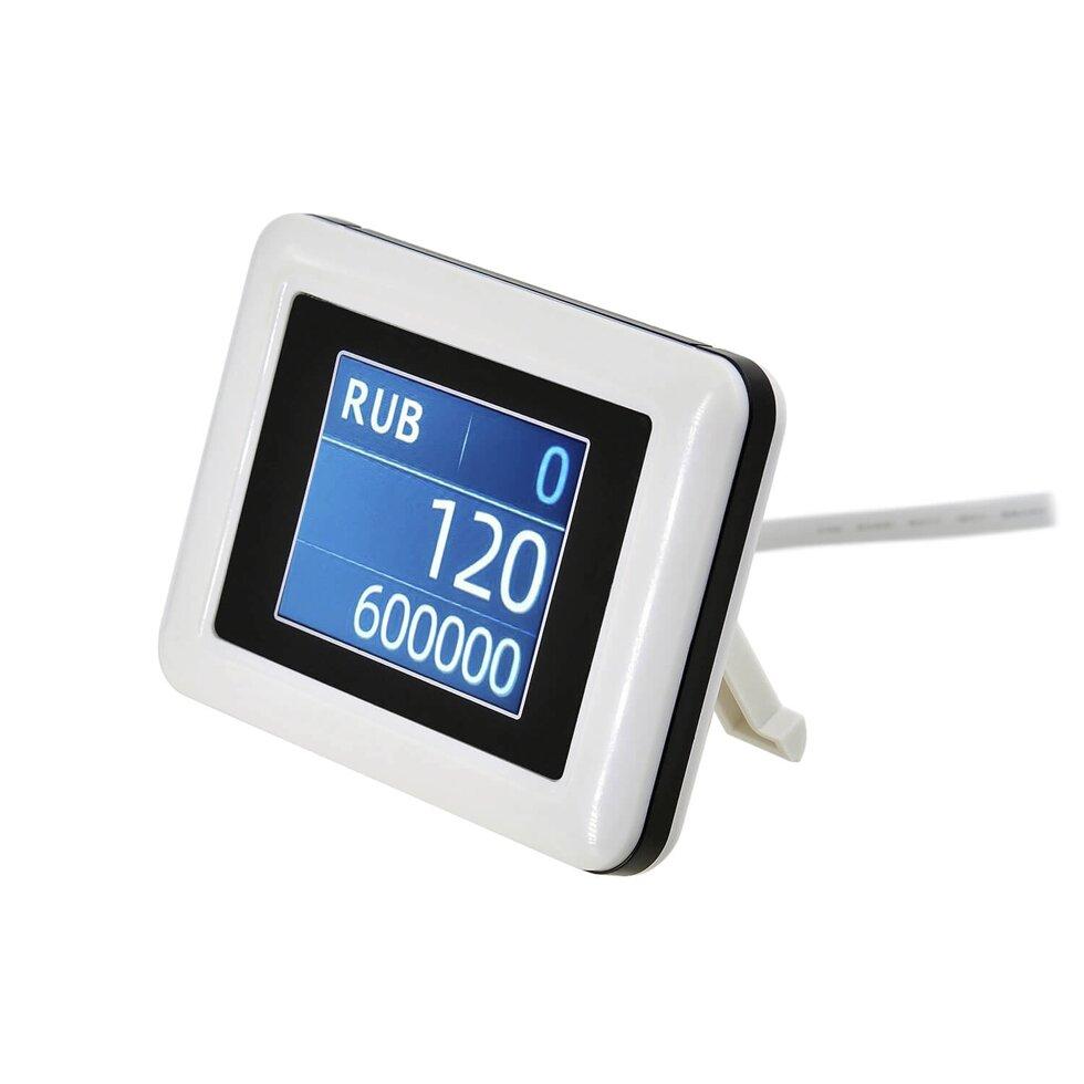 Выносной дисплей упрощает работу со счетчиком купюр. На его экран выводятся большие цифры, которые хорошо читаются. Используя этот аксессуар, можно демонстрировать сумму подсчета, не допуская посторонних в кассовую зону. На выносном экране отображаются те же цифры, что и на встроенном дисплее счетчика.Характеристики выносного экранаКорпус аксессуара сделан из прочного пластика. Цвет панелей: белый. Конструкция защищена от ударов, от падений с высоты 1,5 м. Также корпус защищает электронику от пыли и влажности.Выносной дисплей совместим со счетчиком банкнот MERTECH С-200 CIS. Вы можете начинать работу с дисплеем сразу после подключения.